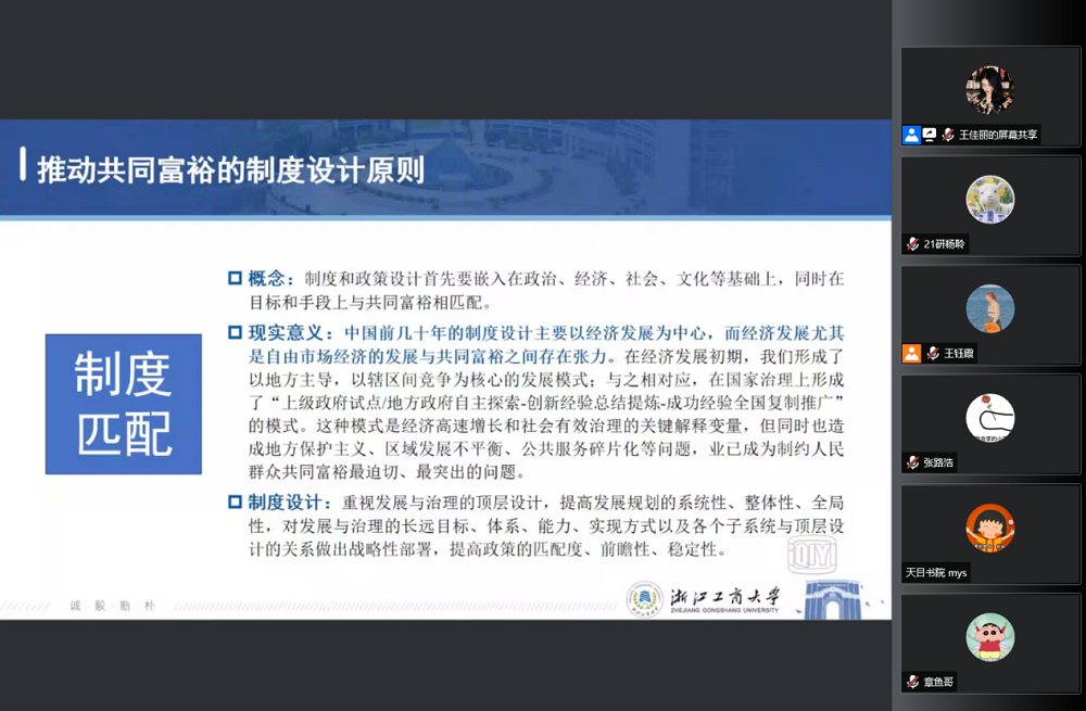 郁建兴教授受邀担任本次论坛的主讲人,为师生开展了主题为“共同富裕的理论内涵与政策议程”的线上学术讲座。永利娱乐