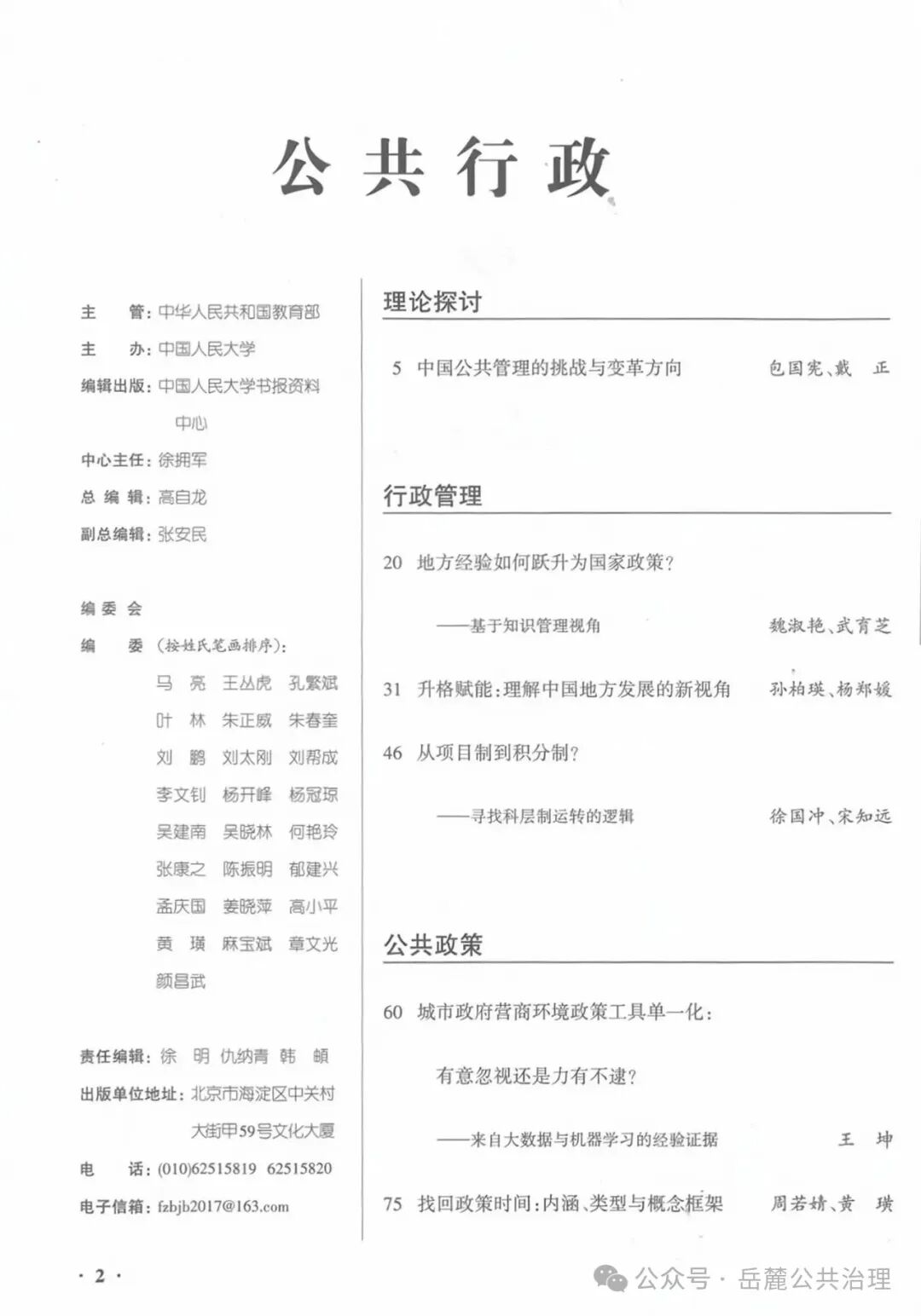 《岳麓公共治理》2025年第2期文章《在绩效与认同之间:技术治理的合法性承载及其演化》(作者:王磊,杨茜钥,王小芳),被《人大复印报刊资料 · 公共行政》2025年第12期全文转载。