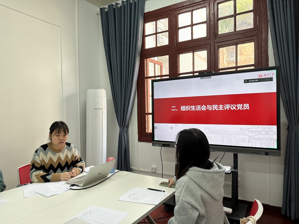 硕士研究生第四党支部在学院214室召开组织生活会和民主评议党员大会。会议由党支部书记罗欢主持,全体在校党员参会。