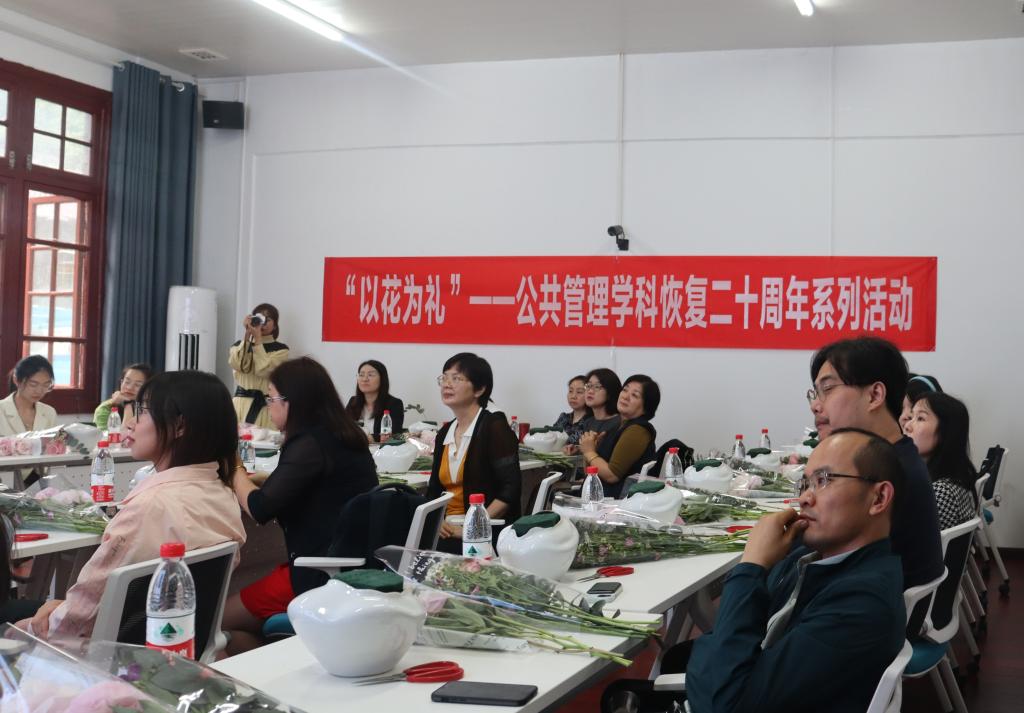 本次主题插花活动作为公共管理学科恢复二十周年系列活动之一,旨在提升师生们的幸福感、满足感、获得感,支撑全院师生以更好的精神面貌投入到学科建设和发展中。活动不仅让师生增进了交流、陶冶了情操,还让大家收获插花这门优雅的技艺,放松了心情,让广大师生在感受美、欣赏美、创造美的过程中度过了一个愉快下午。
