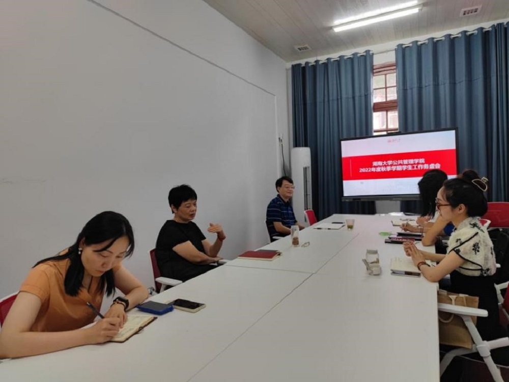 在220会议室召开心理健康教育专题工作会议,就学院学生心理健康现状展开分析和研讨。院党委书记付蓉芬,党委副书记杜倩博,研究生辅导员杨锦滔,本科生辅导员闫振振、胡春晖,助理辅导员徐一峰、邢梦阳参加会议。