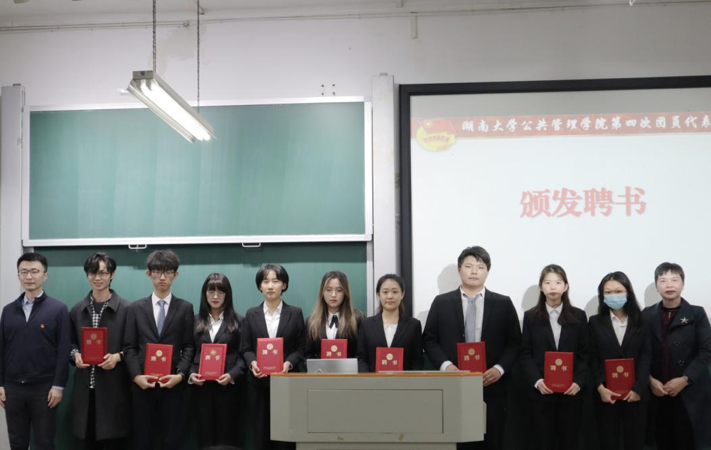党委书记付蓉芬与湖南大学团委书记曹镠为第三届团委委员颁发聘书,对他们表示了肯定。