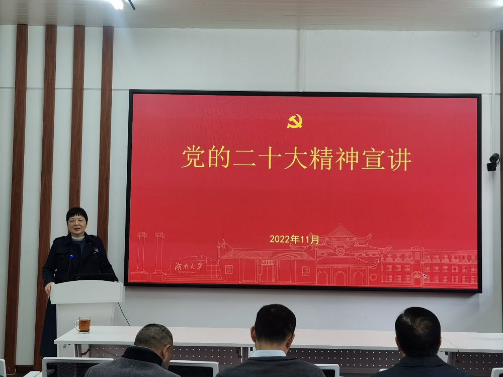 2022年11月15日下午,永利娱乐 召开全体教职工会,专题学习党的二十大会议精神,院党委书记付蓉芬领学。