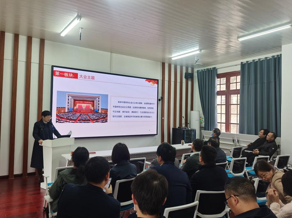 会上,付蓉芬书记深入解读党的二十大报告,并强调党的二十大精神内涵丰富,我们要把学习领会和贯彻落实党的二十大精神作为当前和今后一个时期的首要政治任务,强化理论学习,强化思想淬炼。
