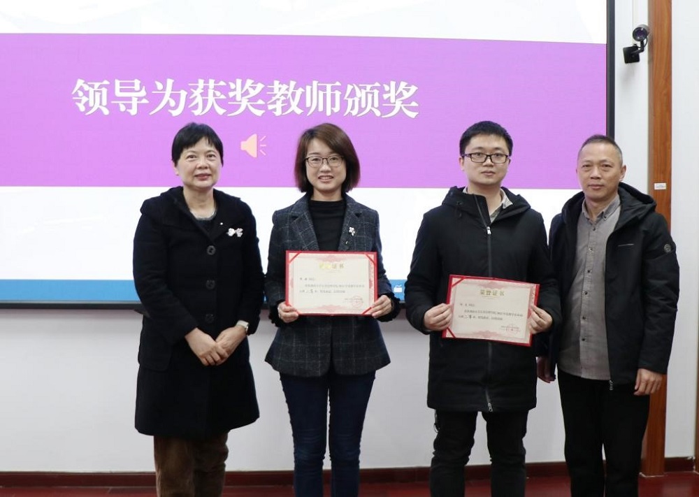 副院长谭海波教授宣布比赛结果——许源老师获得一等奖;周蔚、何文老师获得二等奖;杨晶、龚茴茴、任皓、原嘉志老师获得三等奖。