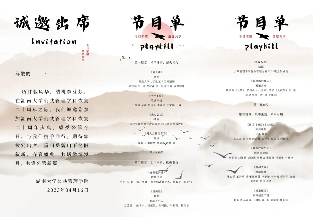 共有100余名学生干部和志愿者穿上志愿服装、带上工牌,带着饱满的热情,秉持无私奉献的精神,积极参与到前期筹备策划、会场引导布置、晚会组织开展、嘉宾与校友服务等工作中,用青春朝气为湖南大学公共管理学科恢复二十周年庆典提供诚挚服务。