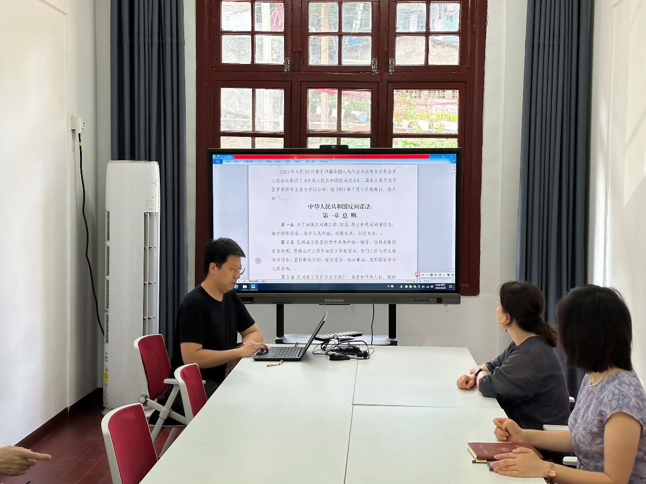 2023年6月28日,永利娱乐 机关党支部在学院220会议室召开会议,专题学习《中华人民共和国反间谍法》。会议由支部书记李释然同志主持。