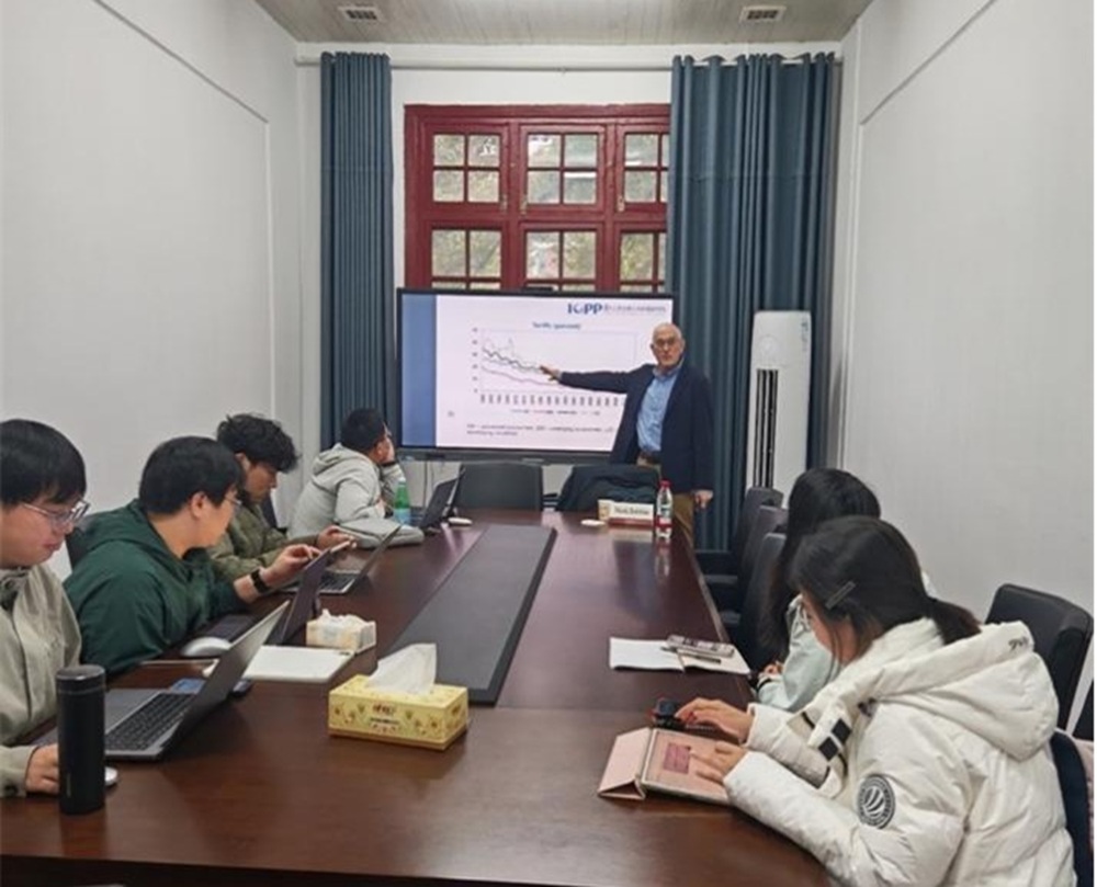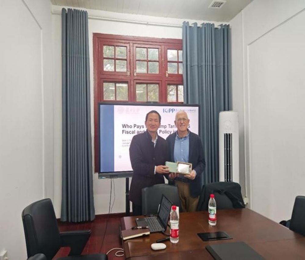Mark Robbins从美国关税的财政属性切入,系统梳理了美国关税政策的历史演变与法律基础,并结合历年特朗普关税的实证数据,深入分析了关税对美国经济、通胀及税负归宿的多维影响。此外,Robbins教授还分享了美国公众对关税政策的认知态度,为在场师生理解美国财政与贸易政策的现实逻辑提供了多元视角。在交流互动环节,师生围绕相关议题展开热烈讨论,教授逐一细致回应,现场学术氛围浓厚。