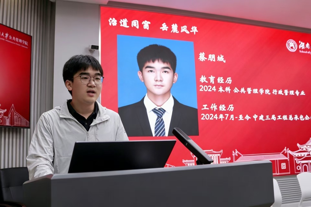 2024届毕业生蔡朋城提到了公管学子需要具备的写作沟通、统筹解决、政策变通等综合能力,鼓励大家夯实基础、积极实践,尽早明确目标,选择适合自己的职业。