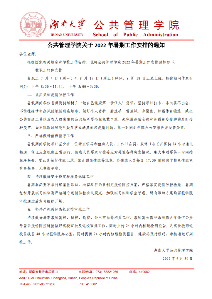 2022年暑期工作安排通知如下: