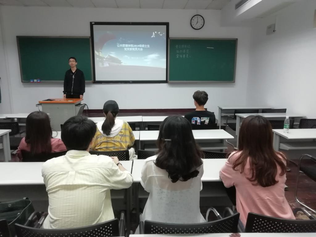 2020年9月16日19点,2019级硕士研究生党支部在中楼307召开党员大会。本次会议应到党员10人,实到9人,1人请假,学院党务与人才培养办公室主任兼研究生辅导员杨锦滔老师列席会议。本次会议由支部委员周杨康主持。
