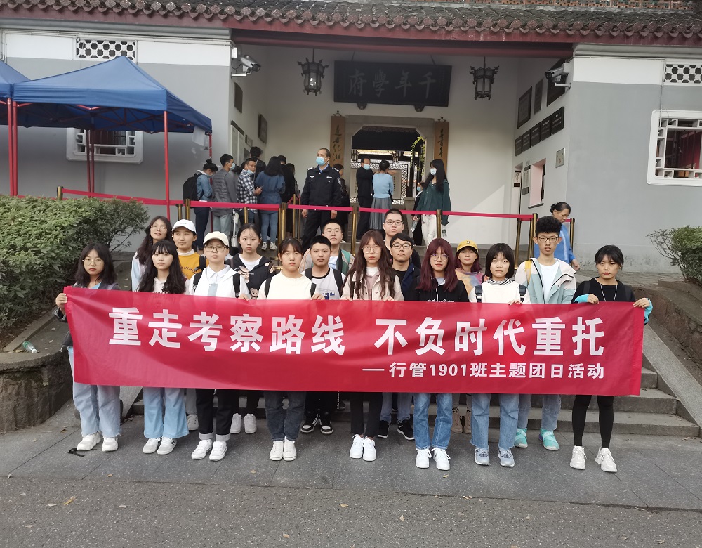 为了深入学习贯彻习近平总书记在湖南大学考察调研时的重要讲话精神,10月22日,2019级行管一班团支部在岳麓书院开展“重走考察路线,不负时代重托”主题团日活动,支部全体成员参加此次活动。