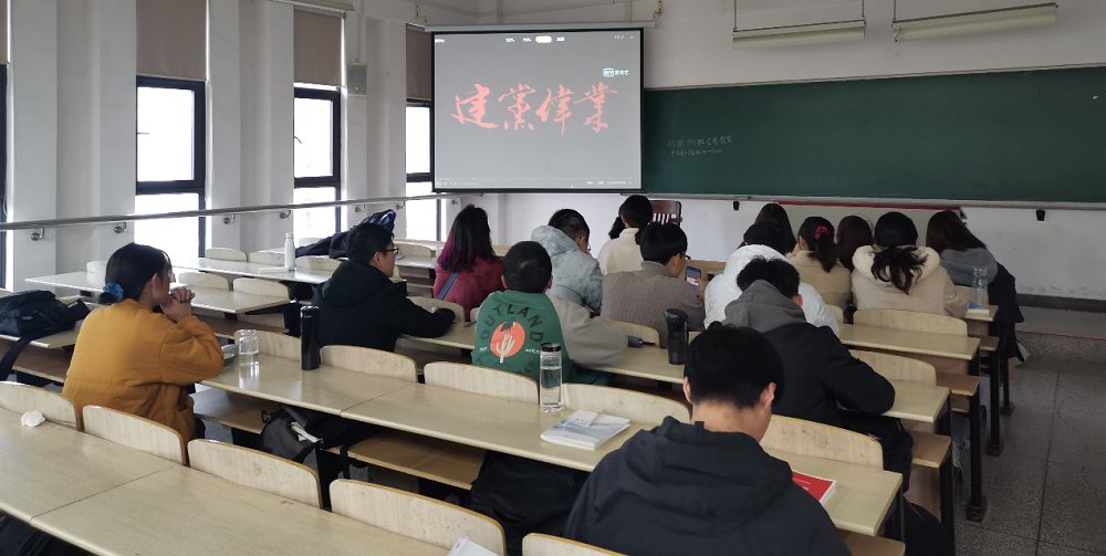 讲述结束后,洪潇玲同学为大家播放了电影《建党伟业》,电影展示了以毛泽东、李大钊、陈独秀、董必武、周恩来等为中心的第一批中国共产党党员,在危机四伏、风雨飘摇的旧时代赴汤蹈火、努力探索救国救民道路的精彩故事。由此,同学们得以重温中国共产党建党的那段峥嵘岁月,感受革命先辈崇高的信仰,以及他们为了自己的崇高信仰而执着努力奋斗的伟大精神。同学们观看后纷纷发表心得体会,展开了热烈的讨论。