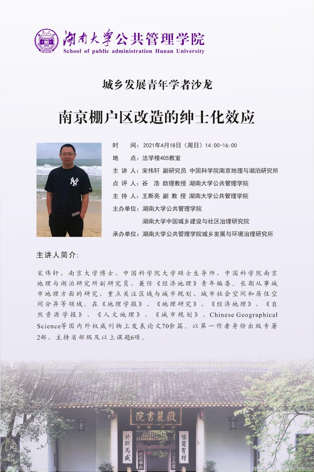 城乡发展与环境治理研究所打造的学术活动平台之一。该平台以提升学术素养、促进学术碰撞、激发学术灵感为根本追求,不定期邀请国内外活跃的优秀青年学者开展高质量学术讲座,就城乡发展领域的一系列重要理论和现实议题进行广阔的学术讨论,力求营造开放、自由、宽松的交流氛围,推动形成相互启发、共同进步的学术共同体。
