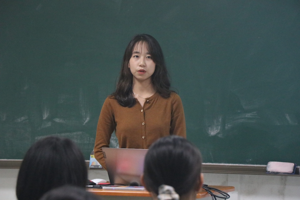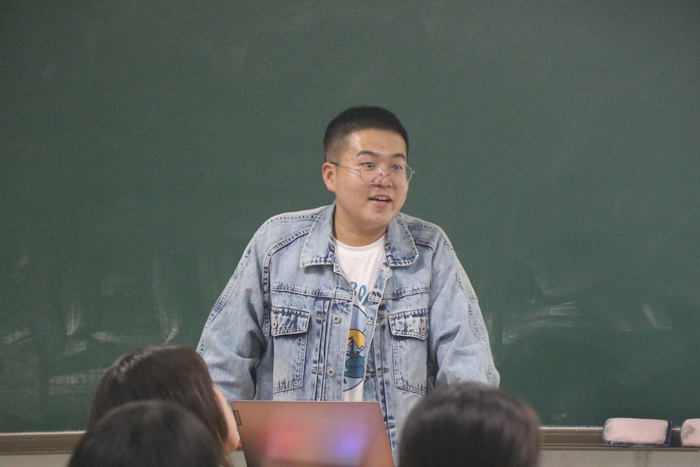 辩论队队长崔丽娟向大家介绍并展示了以往辩论队比赛时的精彩画面,让同学们对学院学生团体有了更加深入的了解。