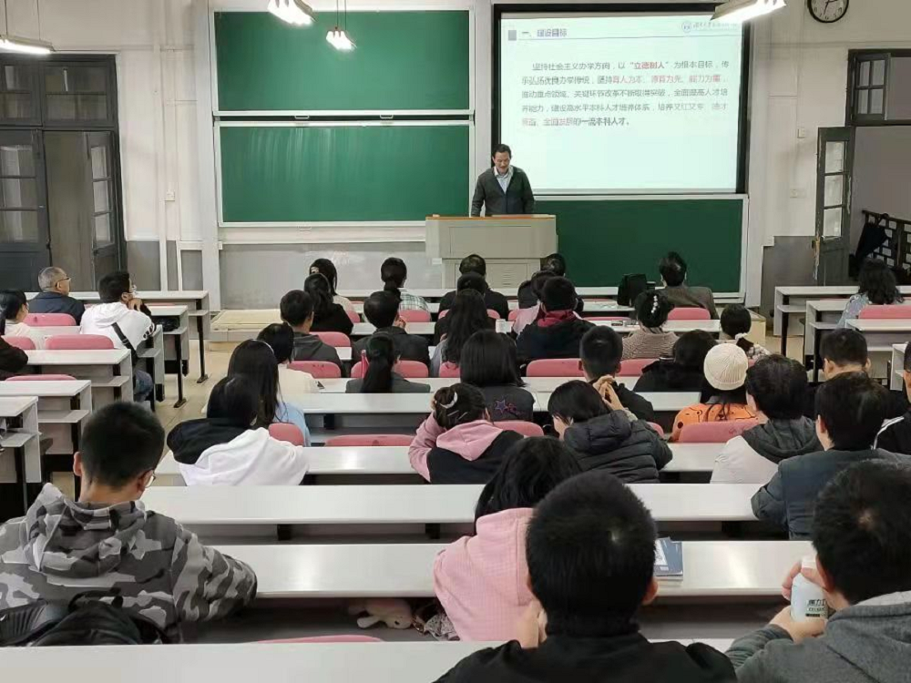 副院长谭海波老师就加强顶层设计、改革人才培养模式、建设一流专业、突出学科专业特色、提高本科人才培养能力、健全本科人才培养支撑保障体系、实施目标导向的教学质量监控体系与评估机制等方面介绍了《湖南大学新时代本科教学改革实施方案》的重点工作。“教育的本质是唤醒。教育,意味着一棵树摇动另一棵树,一朵云追逐另一朵云,一个灵魂唤醒另一个灵魂。”在讲话的最后,谭老师引用雅尔贝斯的话,对本科生导师制的推进表达衷心的期待。