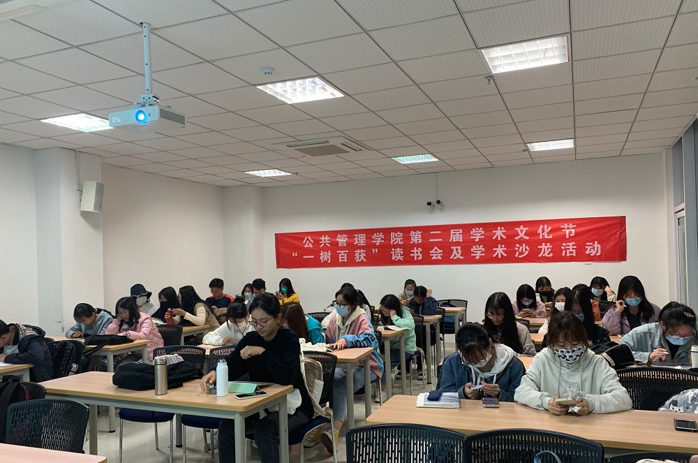 学术文化艺术节系列活动之“一树百获”读书会。本次读书会由高晓蕾同学主持,行管20级全体同学参与。