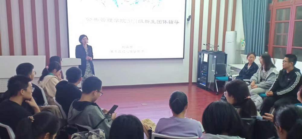 在院楼221教室举行2021级新生团体辅导活动。本次活动由国家二级心理咨询师刘菲彦老师主持,行政管理2102班全体同学参加。