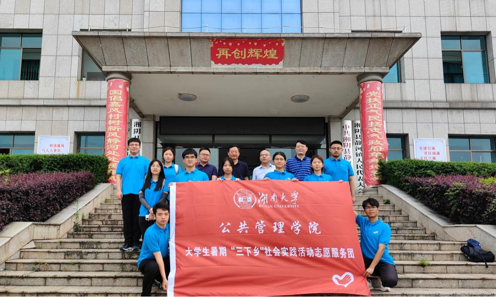 在岳阳市湘阴县静河镇开启暑期“三下乡”实践调研活动。本次活动以“公共治理入静河,乡村振兴迎新风”为活动主题,组建了一支共13人的实践团队,由院长李连友教授、院校友会会长李金龙教授和院党委副书记杜倩博副教授进行指导,是永利娱乐