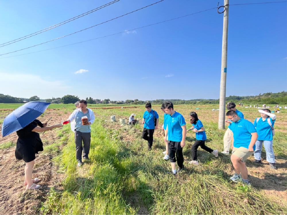 在龙潭寺村,村党总支书记蒋书记和驻村工作队刘主任介绍当地经济合作社发展状况、移风易俗成果和生态环境保护措施等。集体经济方面,当地有龙潭寺农民专业合作社和湘阴县静海合作社两家合作社,种植水稻、藠头、藕、红薯等。移风易俗方面,严格落实全域禁炮,为有需要的村民提供电子炮的租借。村容治理方面,聘请保洁员打扫卫生,并为贫困劳动力提供部分岗位;聘请专业森林防护员预防森林火灾,在十月十日至次年三月三十日广播播放森林防火相关警示。此外,刘主任还向大家详细讲述了龙潭寺村驻村工作队如何落实“八个推动”,促进乡村振兴。座谈会后,刘主任带领大家参观藠头基地,详细说明了藠头的历史、种植和出口等情况:该村藠头基地总面积186亩,年收成4000-5000斤,市场价每斤1.5元,大部分远销日本。