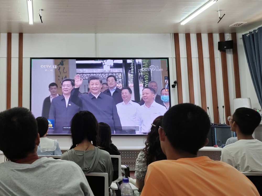 院楼221教室集中观看习近平总书记在湖南进行考察的视频。