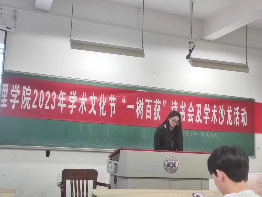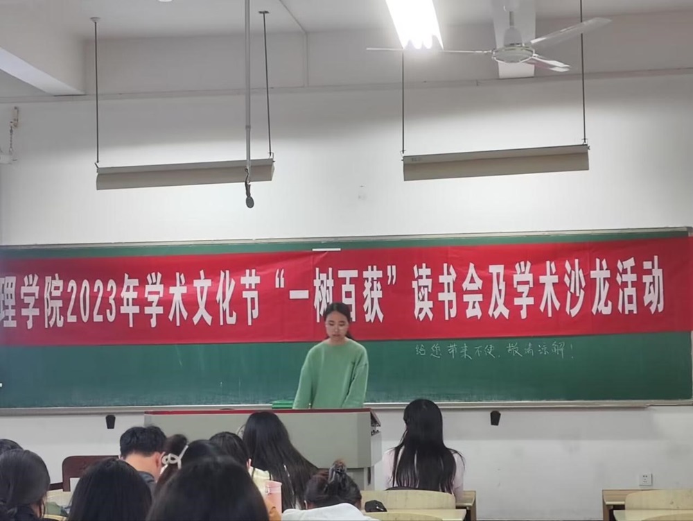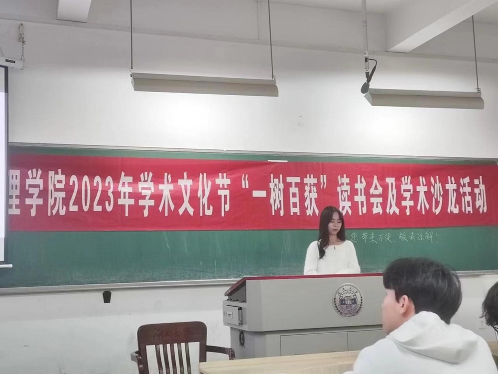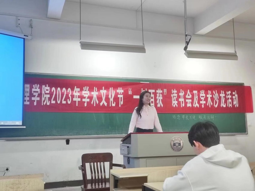 2023年学术文化节系列活动之“一树百获”读书会及学术沙龙活动在综合楼101顺利进行,此次活动共有五位同学进行书籍分享,并邀请了何韵老师进行点评总结,可谓是干货满满。