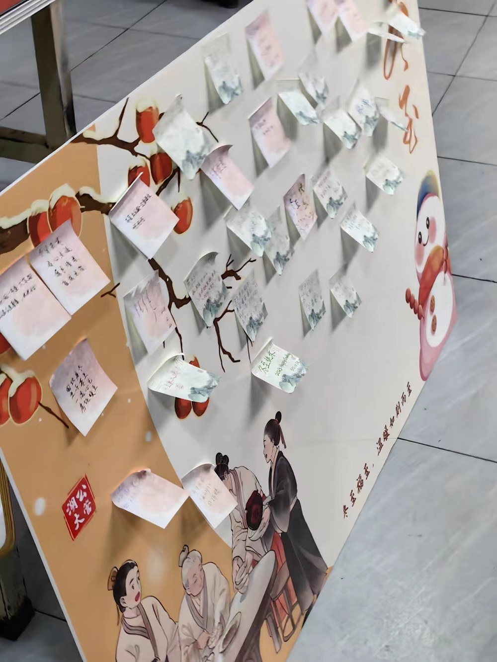 “冬至已至 且待花开”,我们来到了第二个环节:“冬日来信 挥墨抒怀”。你看!来往的同学们在主题展板上写下属于自己的冬日来信,总结着一年来的温暖,也畅想着新一年的美好,“万事顺意 开开心心”“新的一年 拒绝内耗”“冬至快乐”“我要跟好朋友一辈子在一起”……文字的力量是无穷的,在这小小的一张便利贴上,同学们尽情挥墨抒怀,留下独属自己的2023冬日印记和对2024的美好期许。