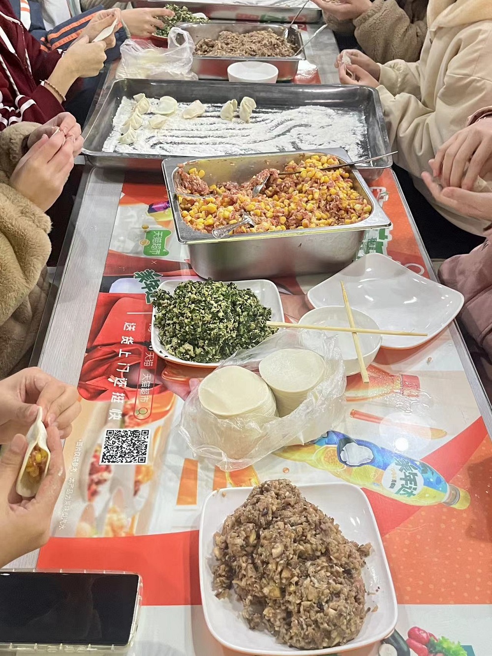 在天马学生公寓一食堂举办“冬至福至 温暖如期而至”主题活动,开启一场“饺饺者”的浪漫约会,为同学们营造了温馨快乐的氛围,同学们在欢声笑语中共度寒冬。