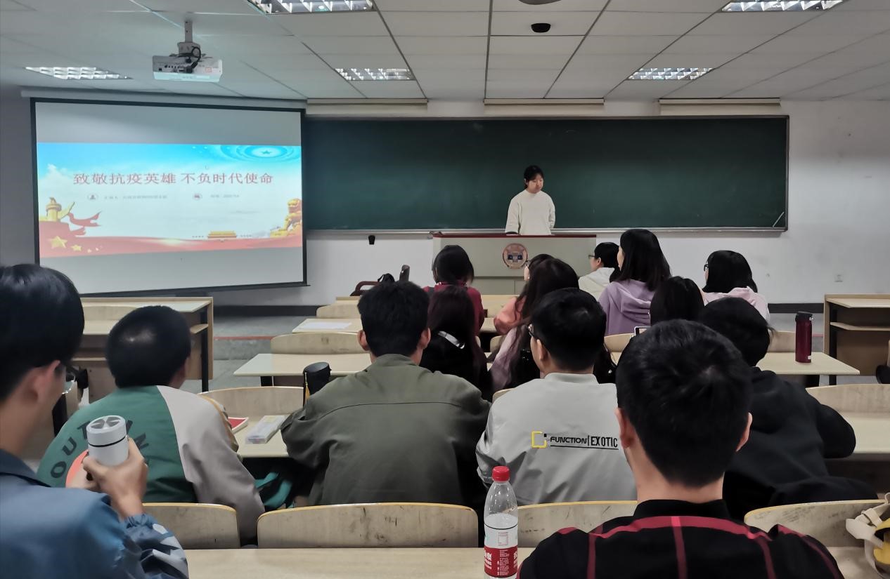 会议伊始,洪潇玲通过PPT向同学们依次介绍了身居抗疫前线无惧无畏的钟南山院士;独自开车1300公里驰援武汉的最美‘逆行者’四川医生黄维;为战胜疫情捐出毕生积蓄的87岁的老人倪素英;最美医生海南省驰援湖北医护代表王晓燕等人的伟大事迹。接着,同学们围绕抗疫英雄进行交流发言。