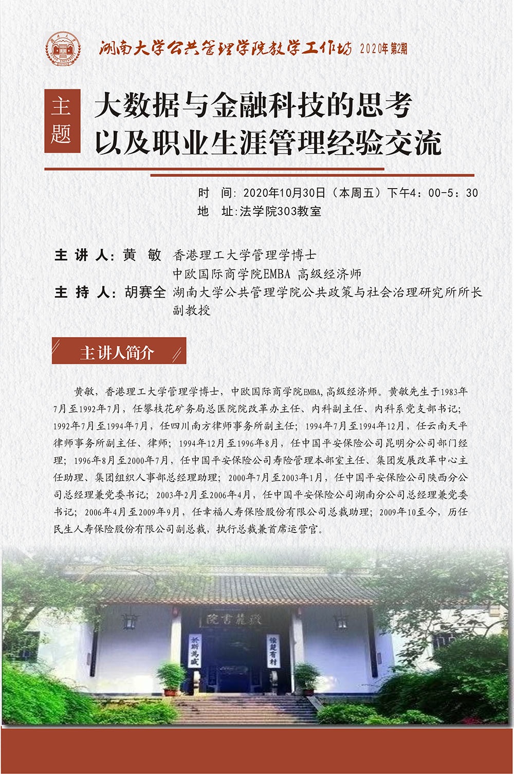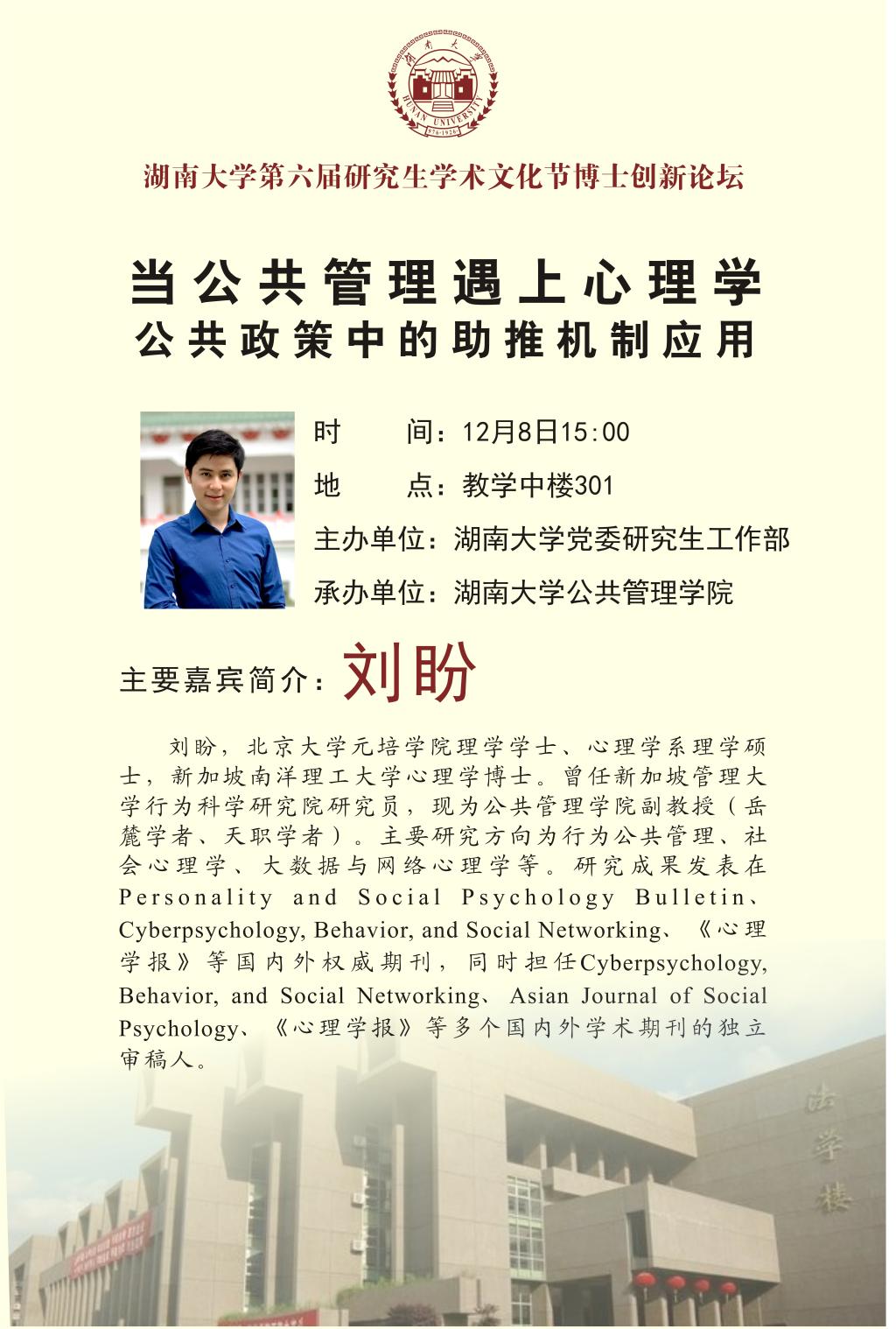 (一)举办湖南大学第六届研究生学术文化节博士创新论坛1期